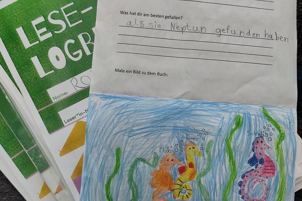 Beim Ferienleseclub machen dieses Jahr zwei Klassen der Grundschule Bünningstedt mit. Über die Sommerferien haben die Kinder selbst ausgesuchte Bücher aus dem Bücherbus gelesen und Logbücher dazu ausgefüllt (s. Foto). Dafür bekommen sie Klassengeschenke und Urkunden.
