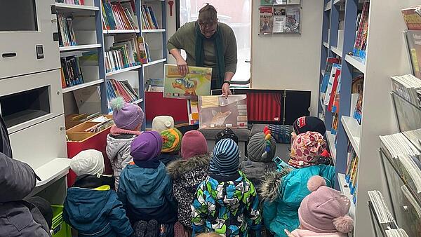 Drei Gruppen kamen nacheinander in den Bücherbus.